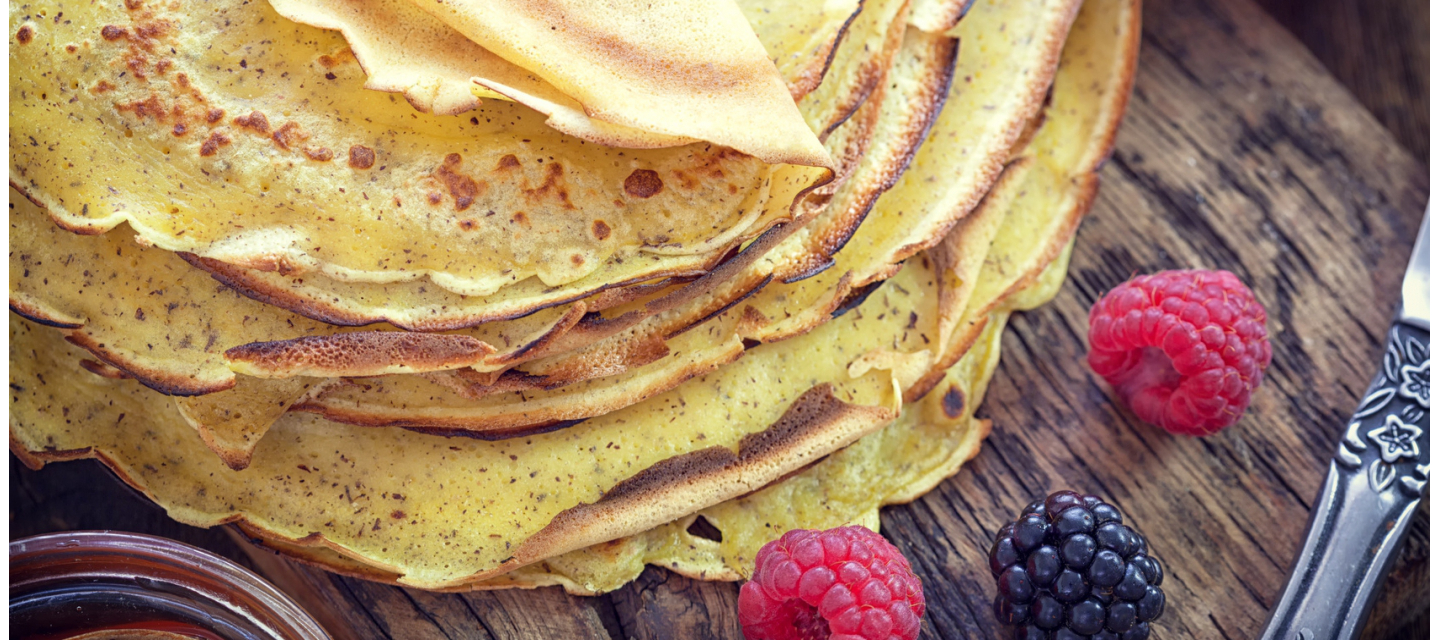 Avant de vous lancer dans une recette spécifique, révisez vos bases avec la vidéo concernant la pâte à crêpes. Pour les plus jeunes, prévoyez pâte à tartiner au chocolat, sirop d’érable ou crème de marrons par exemple. Quand aux grands gourmands, pourquoi ne pas leur servir des crêpes suzette à faire flamber au dernier moment ou des crêpes au citron et au mascarpone ?