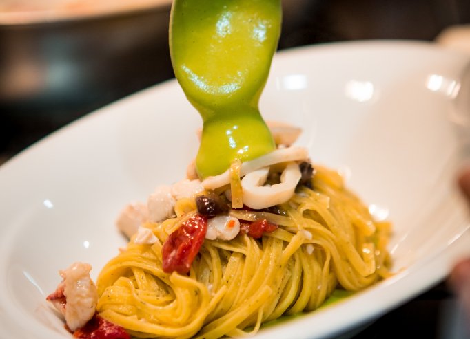 Découvrez une des recettes phare du Café Stern : les Tagliolinis à l’aneth, bar et homard, sauce aux pistaches