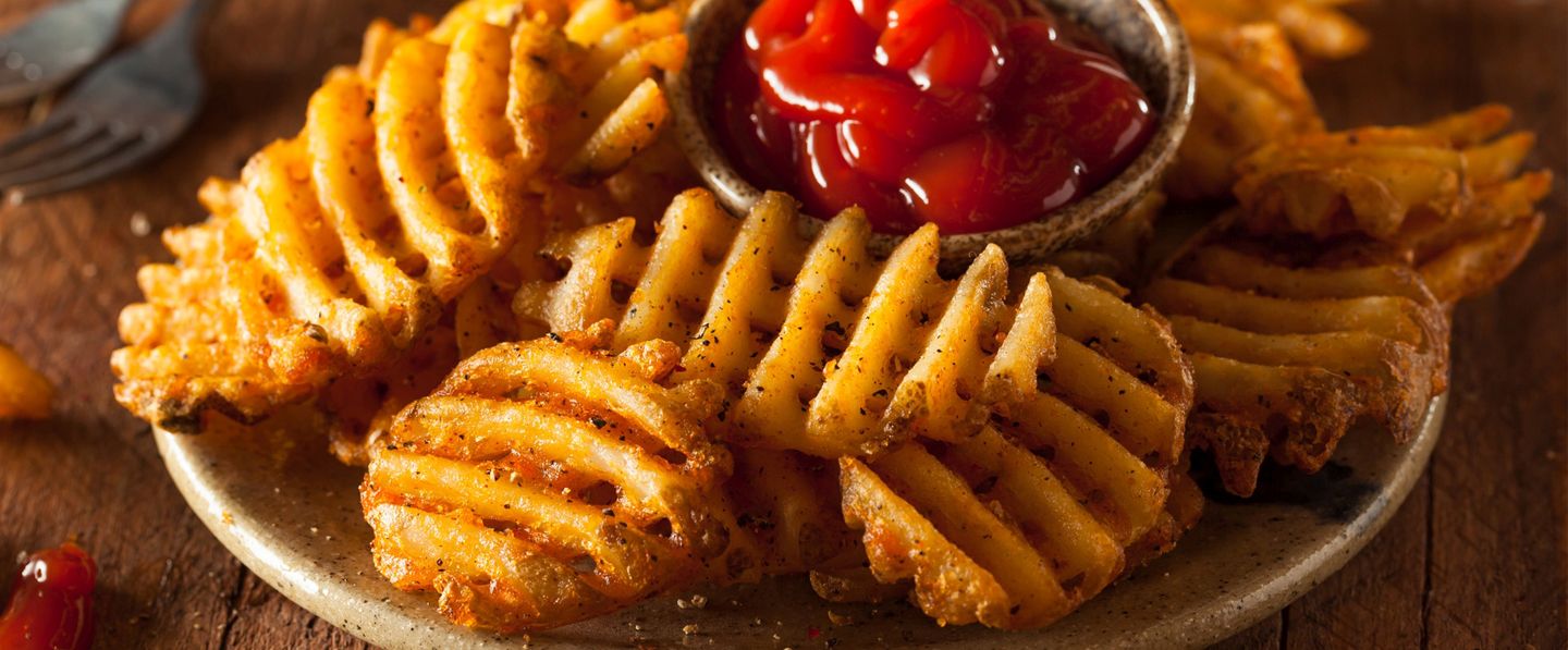 Les pommes gaufrettes : une spécialité du chef Joël Robuchon. Semblables à des chips fines quadrillées, légères et croustilantes, elles se dégustent à l'apéritif ou sont parfaites pour accompagner une viande ou une volaille. Essayez les pommes gaufrettes avec un poulet rôti aux herbes par exemple !
