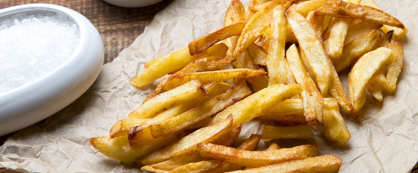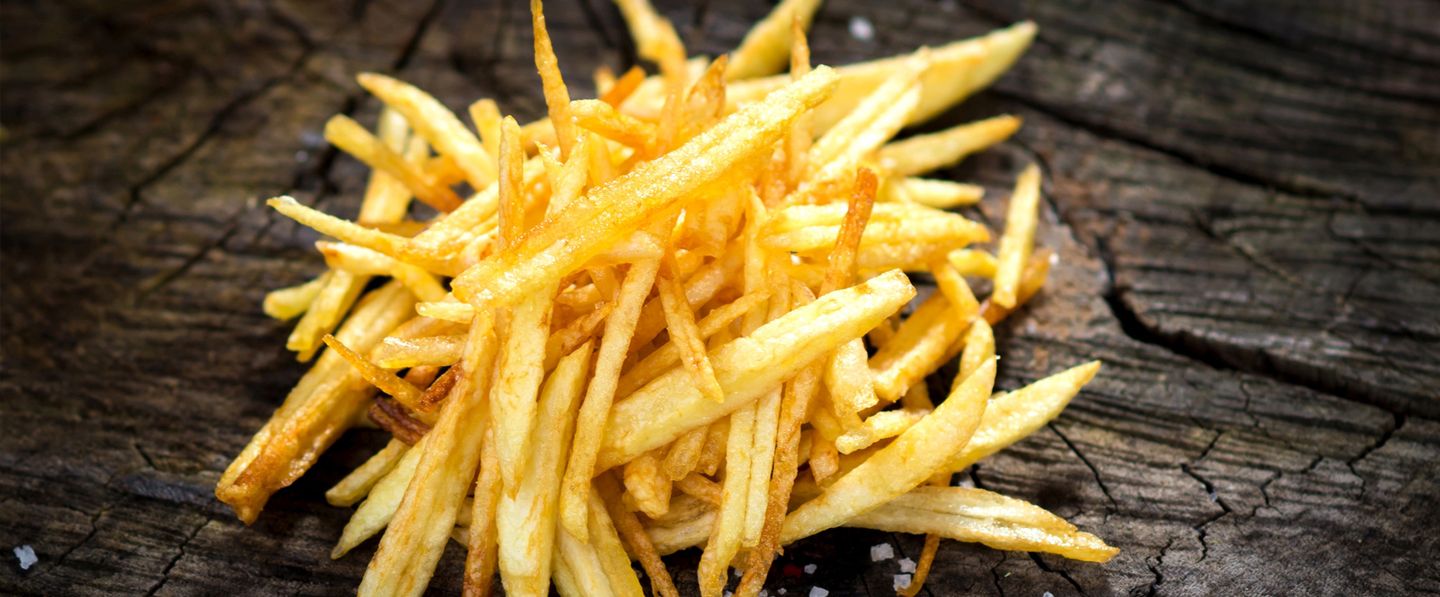 La frite allumette : classique et indémodable, elle présente une forme longue et se taille relativement finement (0,3 cm de section). Elément incontournable du fish and chips, elle aussi accompagnera parfaitement une pièce de viande ou le délicieux hamburger de boeuf teriyaki oignons frits et coriandre lard cripsy !