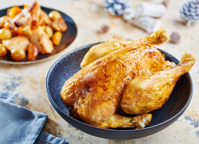 Pour le plat, vous faiblirez devant cette volaille rôtie aux raisins, abricots et figues et parfumée aux milles épices.