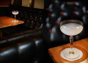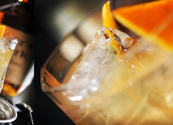 Frapper avec de la glace. Passer le mélange et verser dans un verre à cocktail rafraîchi.