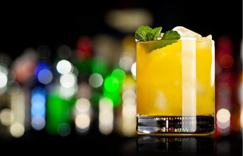 Servir dans un verre avec quelques glaçons et décorer avec une feuille de menthe.