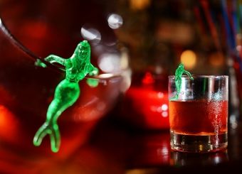 Dans un shaker, mettre les morceaux d'ananas, la menthe et le sucre. Les écraser.