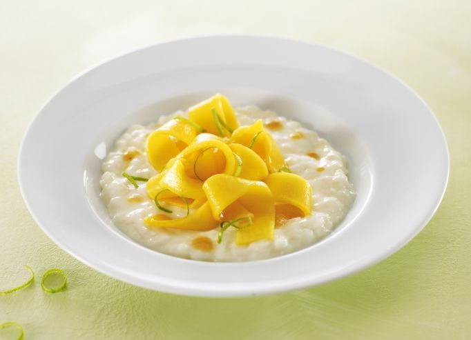 Dégustée depuis plus de 4 000 ans en Inde, la mangue est considérée par les Indiens comme « le roi des fruits ». Symbole de la royauté, le manguier fut vénéré de nombreux siècles par les Indiens. Il fut également très apprécié du Bouddha, qui profitait de son ombre pour méditer. La mangue ne fut introduite en Angleterre et en Europe qu’au XVIIIe, par les Anglais, et en Amérique par les Espagnols et les Portugais. Aujourd'hui, la mangue est produite dans 70 pays tropicaux répartis sur tous les continents. Il en existe des centaines d’espèces, reparties en deux catégories : les sans-fibres et les fibreuses. Parmi les variétés de mangues les plus exportées, on retrouve l’Attifé, la Lent, la Keitt chez les sans fibres, et la Tommy Atkins, l’Hadène, l’Amélie pour les fibreuses. Selon les variétés, la mangue est ronde ou ovale et sa peau lisse peut être verte, jaune ou écarlate. Il aura fallu la vague de la « nouvelle cuisine » avec le sucré salé, pour que la mangue soit utilisée autrement qu’en dessert.