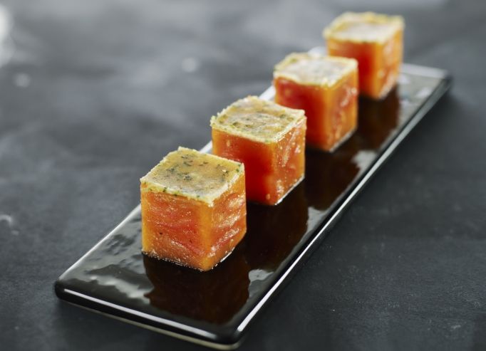 Originaire d'Amérique centrale, la tomate est arrivée en Europe au XVIème siècle. Fruit de la famille des solanacées, elle a longtemps été suspectée de toxicité : elle est utilisée jusqu'au XVIIIème siècle pour éloigner les moustiques ou comme plante ornementale. Appelée autrefois "pomme d'amour" et "pomme d'or" (nom d'ailleurs conservé en italien pomodoro), elle a d'abord gagné la confiance des Méditerranéens sous forme de sauces et coulis avant de devenir à partir des années 20 l'emblème des cuisines du Sud.