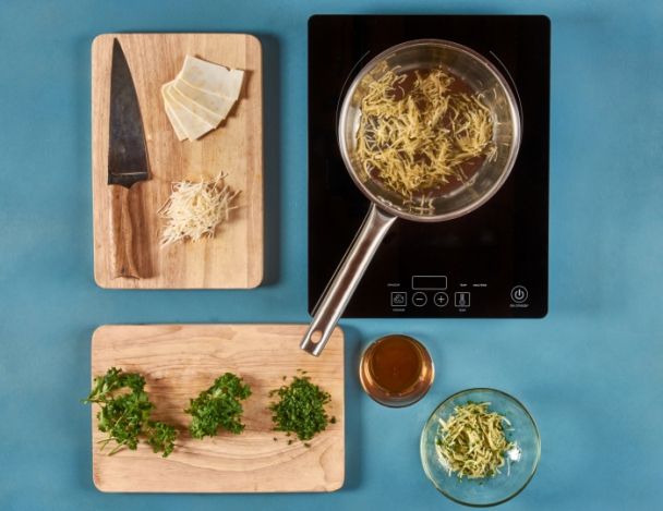 Effeuiller et hacher le cerfeuil. Le réserver.