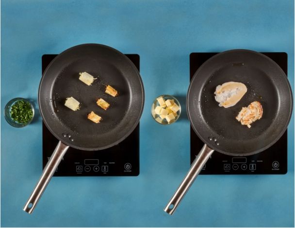 Chauffer une poêle avec un filet d’huile d’olive et faire revenir les cannellonis jusqu’à ce qu’ils soient bien dorés.