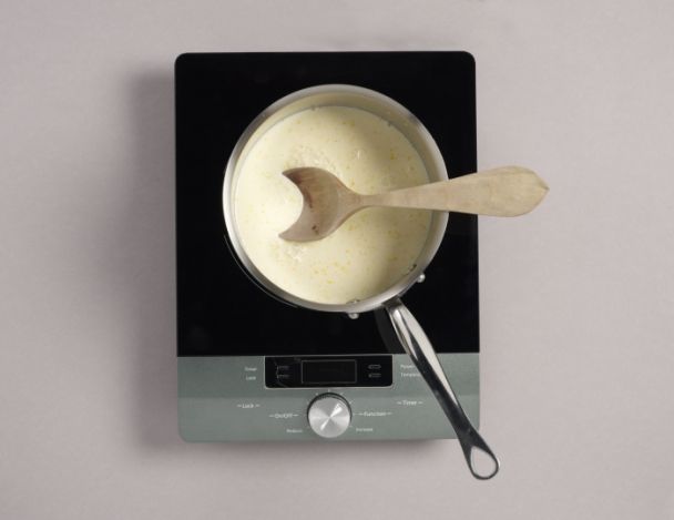 Cuire le tout comme une crème anglaise c'est à dire cuire à petit feu en remuant jusqu'à ce que la crème épaississe et ne pas porter à ébullition.