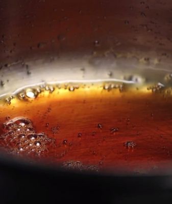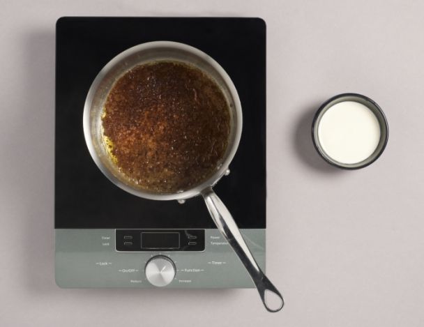Dans une casserole, mettre le sucre à cuire à sec. Laisser blondir pour faire un caramel. Ajouter la crème et faire cuire 5 min. Refroidir.