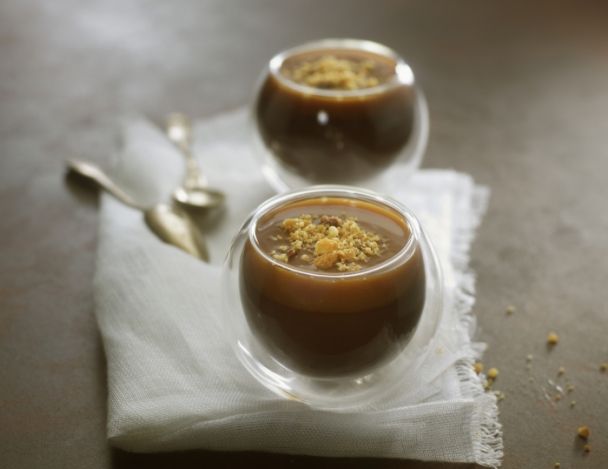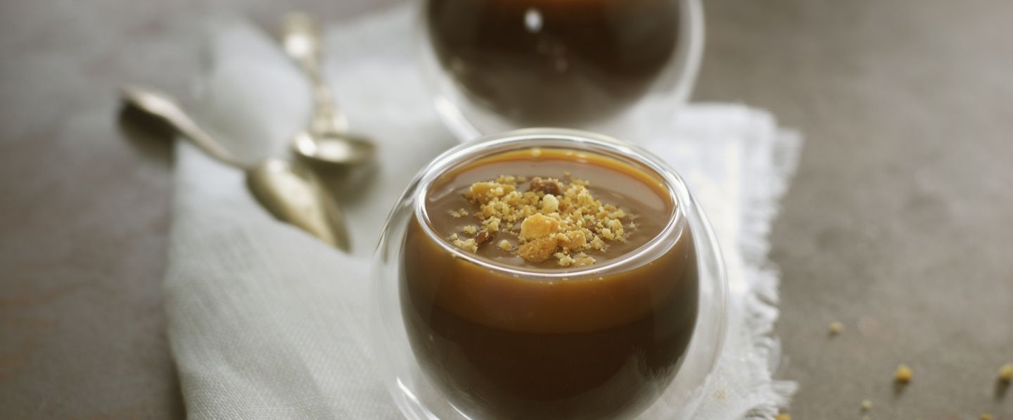 Une recette gourmande de dessert : la crème choco-caramel, crumble de Petit Lu, du chef Cassou-Debat. Du fondant et du croquant pour un dessert réussi !