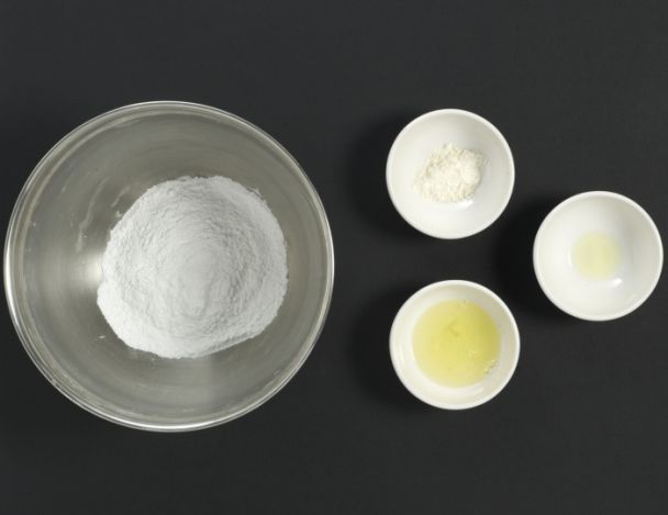 MoyenTamiser le sucre glace. Délayer le sucre glace avec le blanc d’œuf et le jus de citron, ajouter la farine, réserver sous film.