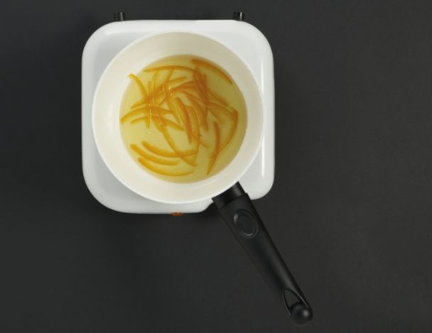 Faire confire les écorces ensuite pendant 30 minutes à feu doux avec l’eau et le sucre.
