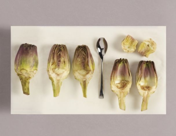 Couper les artichauts dans le sens de la longueur, et retirer les feuilles qui forment un chapeau et le foin à l'aide d'une petite cuillère.