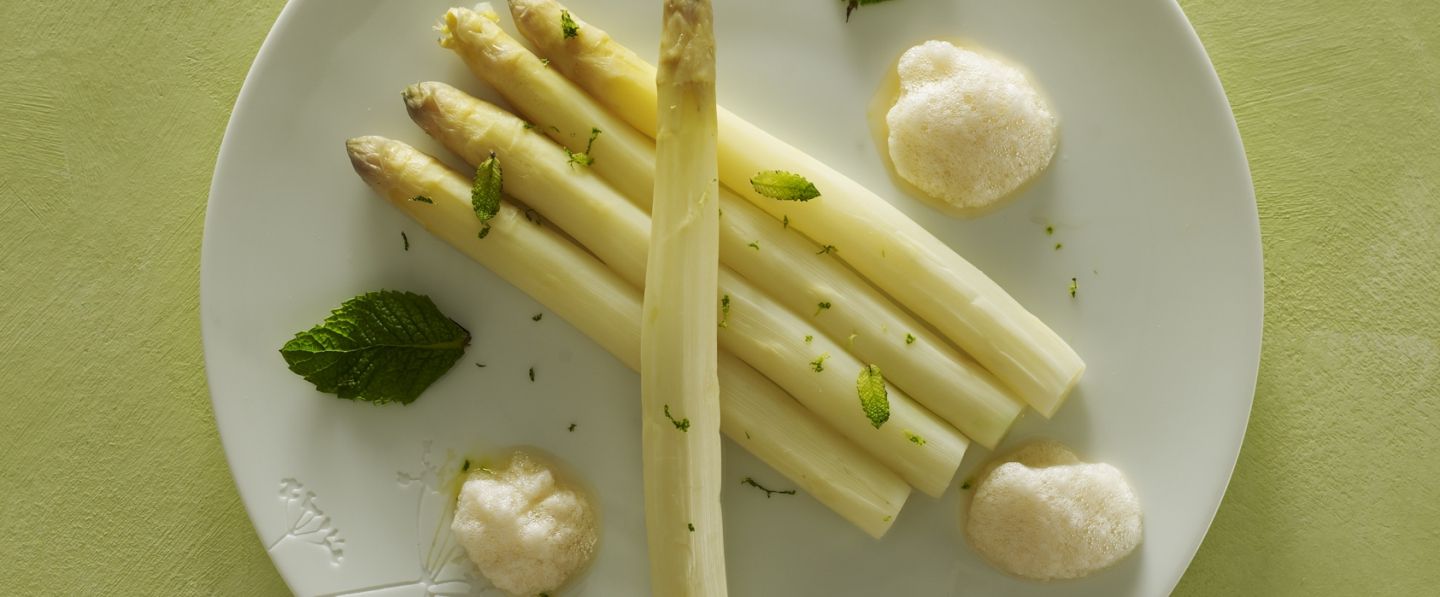 Elles s'installent sur les étals au printemps, ces belles asperges blanches méritent les plus grands soins ! Cette recette d'Asperge blanche au citron et Espuma à l'orange sanguine, composée par le chef Dan Bessoudo, est fraîche et légère pour une entrée simple et raffinée