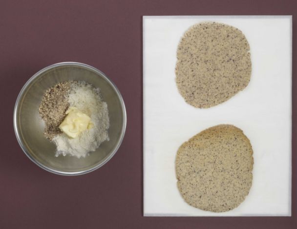 MoyenTravailler le beurre en pommade. Mélanger tous les ingrédients du streusel avec le beurre en pommade puis cuire sur du papier sulfurisé au four à 170°C pendant 10 minutes.