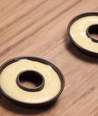 Beurrer et fariner un moule à savarin. Verser la pâte dans ce moule et laisser reposer 2h à température ambiante et à couvert. La pâte doit doubler de volume.