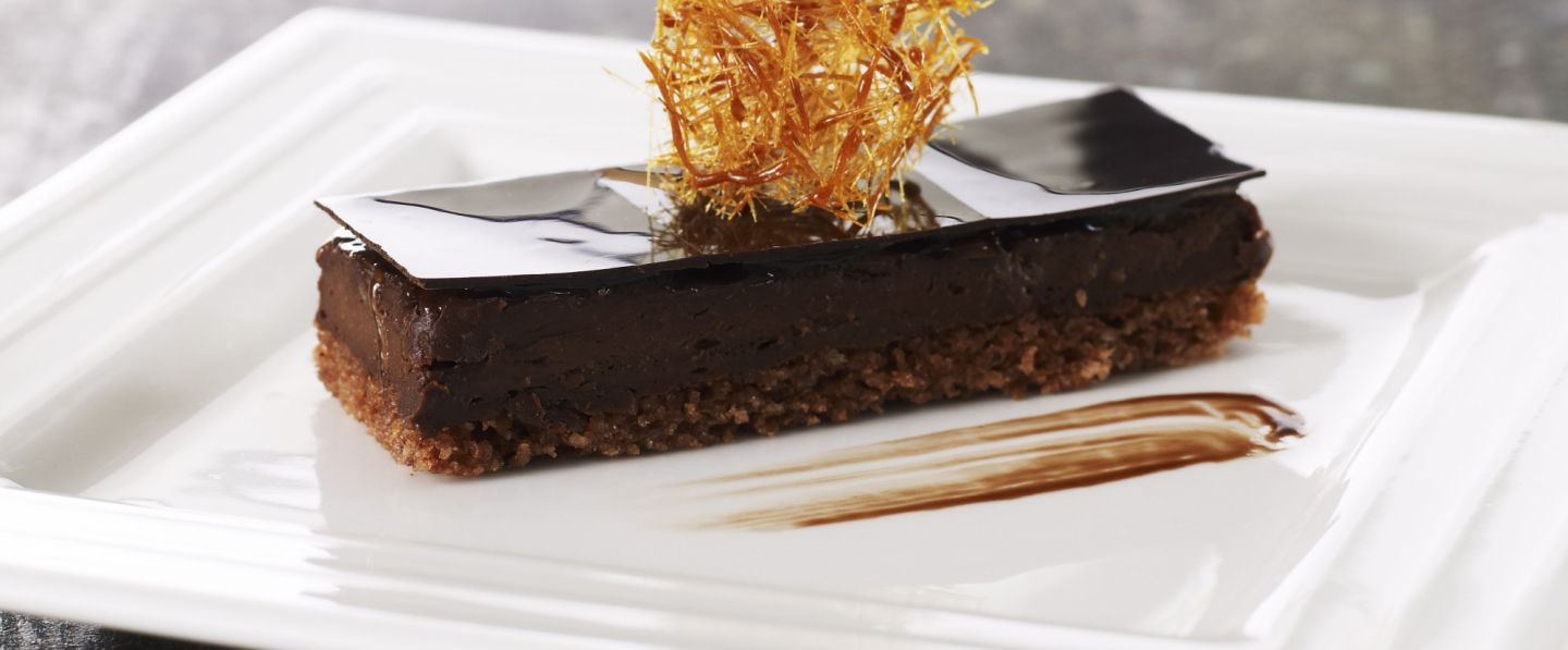 Délicieux et goûteux, le baccara est un entremet composé d'une dacquoise au caco, d'une crème mousseline au chocolat et d'une crème pâtissère.