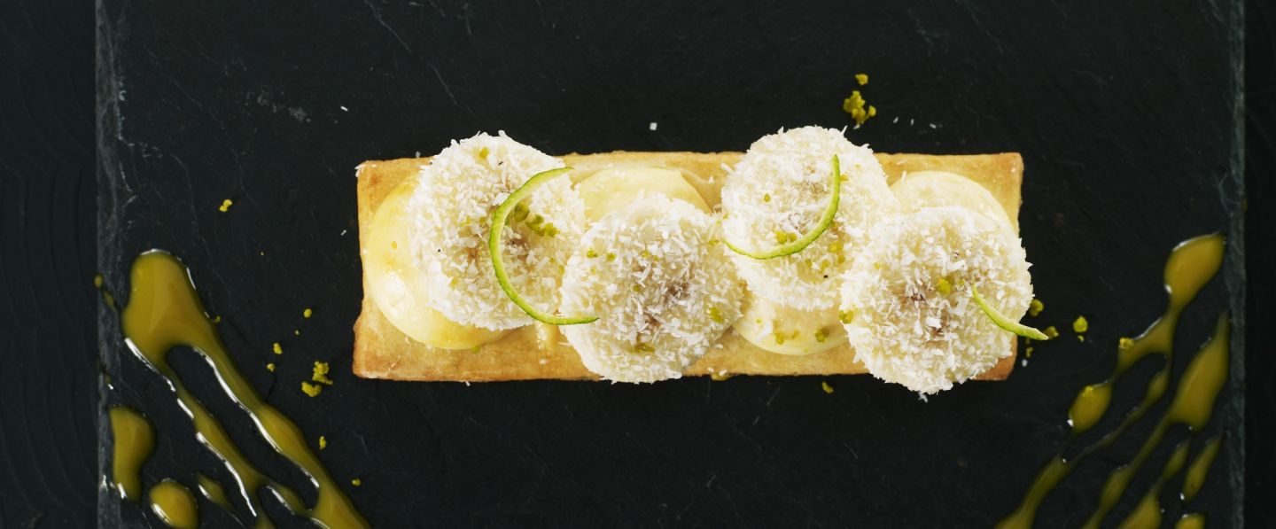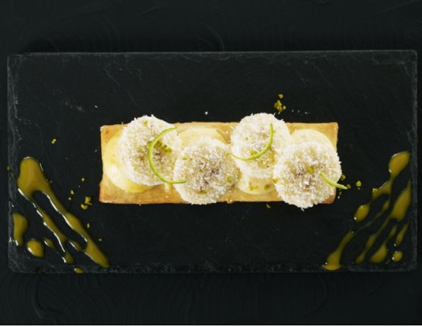 Délicieuse et savoureuse, la recette de banane poêlée sur un sablé au citron vert, crème mascarpone est un dessert qui clôturera à merveille votre repas de fête.