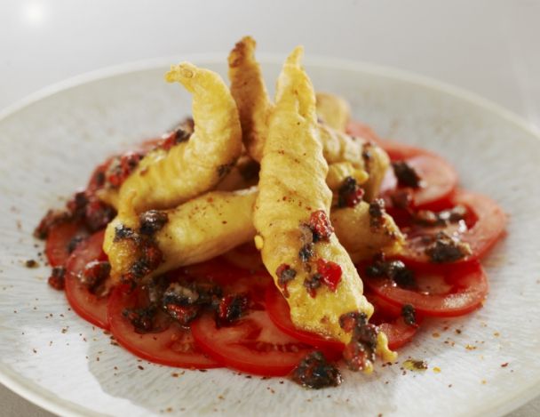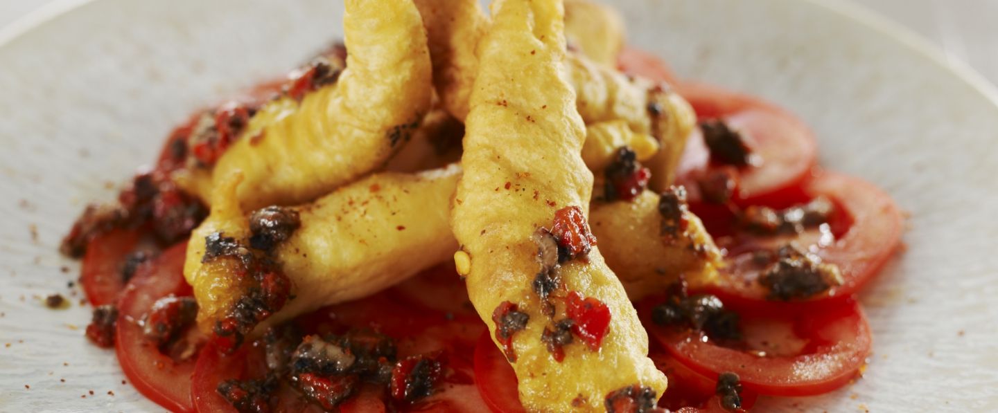Accompagnés d'une salade de tomate à l'anchois mariné, ces beignets de calamar croustillants et gourmands seront parfaits pour l’apéritif ou en entrée.