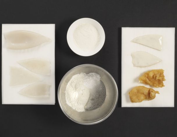 Passer les triangles de calamar dans le reste de farine, puis dans la pâte à beignet. Les plonger ensuite dans l'huile de friture chaude. Une fois dorés, les mettre à égoutter sur du papier absorbant.