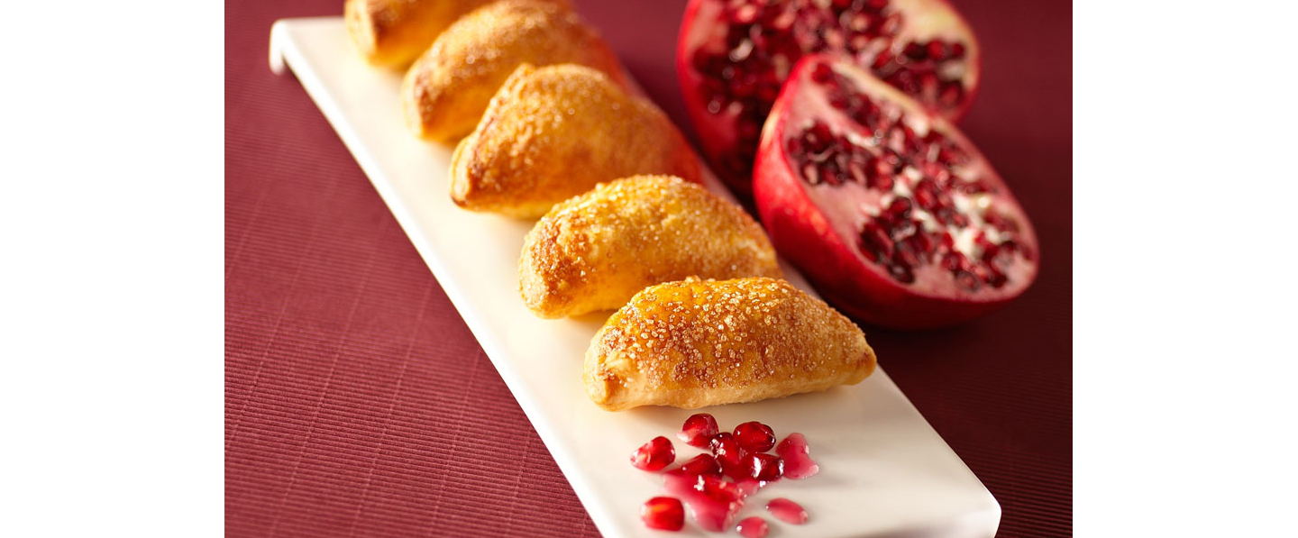 poser au centre de chaque rond une cuillère de compote de rhubarbe et refermer en collant bien les bords.