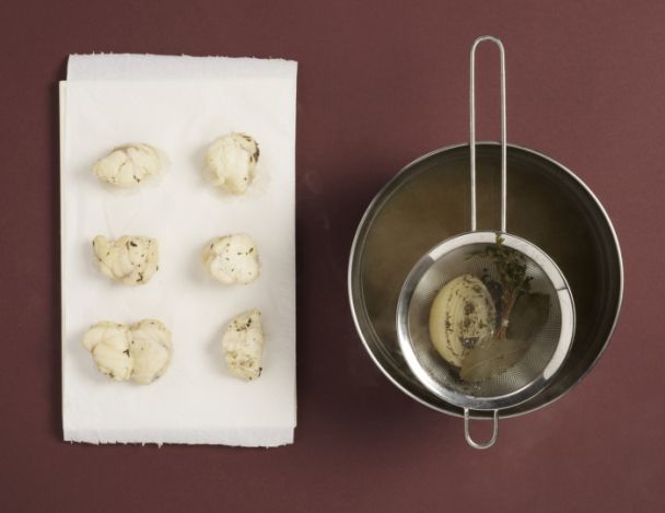 Plonger les morceaux de lotte dans le court bouillon et laisser cuire 8mn.