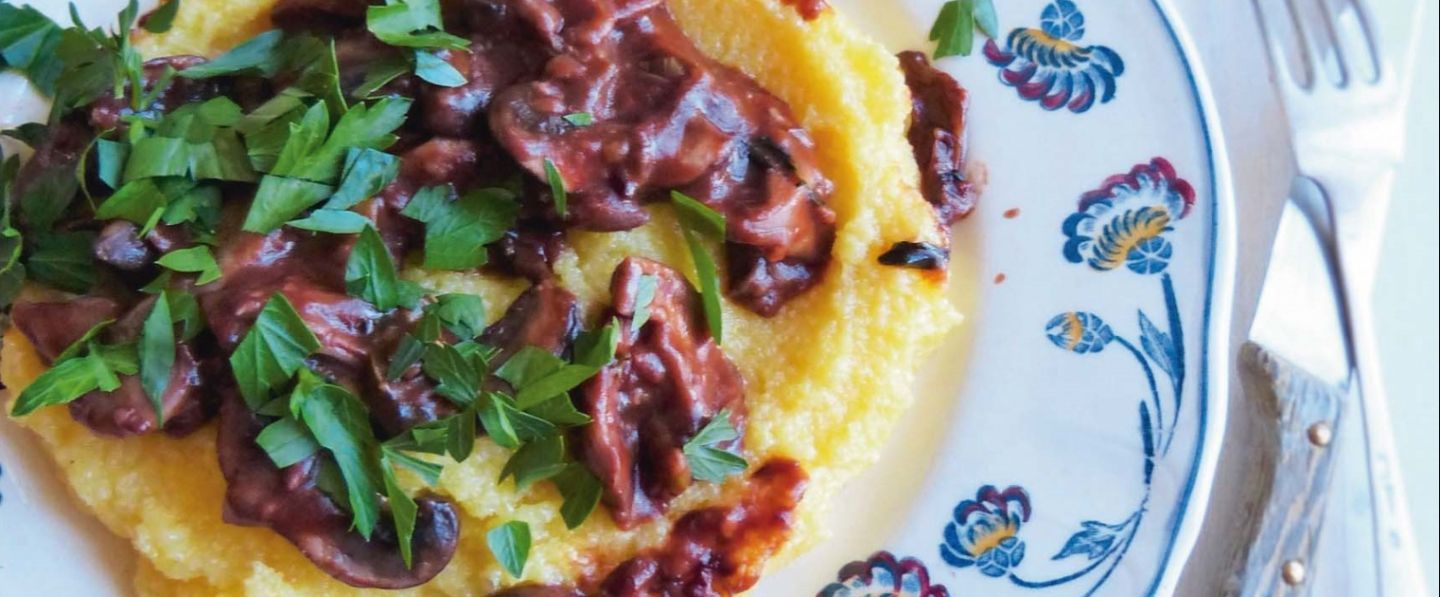 Servez immédiatement la polenta avec le bourguignon de champignons pour un repas réconfortant.