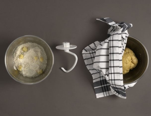 Débarrasser la pâte dans un saladier couvert d’un torchon humide et laisser pousser 1 heure à température ambiante (25 à 30°C) en évitant les courants d’air.