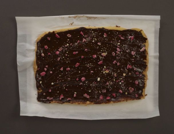 Étaler ce biscuit sur une plaque recouverte de papier cuisson beurré. Enfourner 10 min.