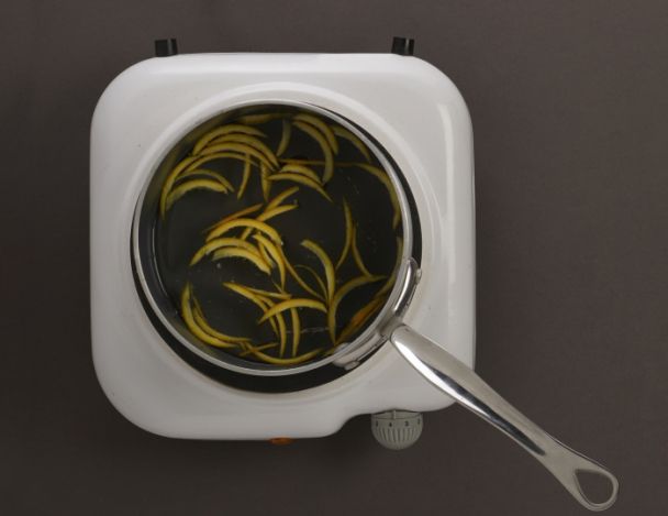 Blanchir les écorces dans de l'eau bouillante 3 fois, en changeant l'eau à chaque fois.