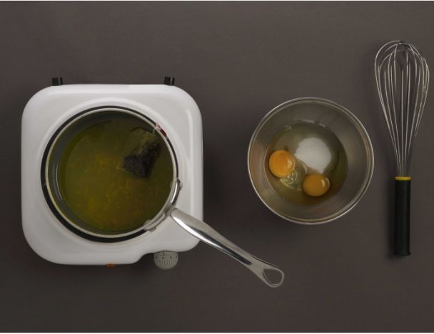 Faire ramollir la gélatine dans l'eau froide. Râper finement le zeste de 2 oranges et presser les 3 oranges. Chauffer le jus d'orange dans une casserole et laisser infuser le thé et les zestes durant quelques minutes. Enlever le sachet de thé,