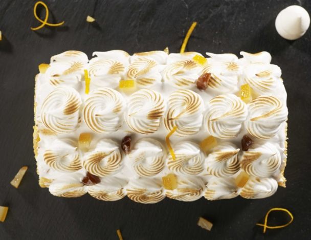 Répartir pour finir la meringue italienne sur la bûche à la poche avec douille à bûche cannelée et la colorer au chalumeau. Décorer de champignons.