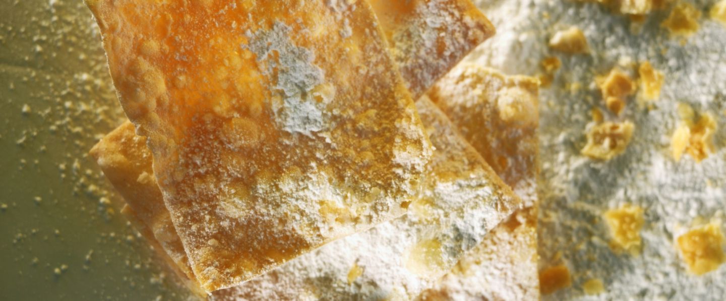 Plonger les rectangles dans l’huile chaude (quelques-unes à la fois). Les retourner dès qu'elles commencent à dorer. Retirer et égoutter sur du papier absorbant. Saupoudrer de sucre glace.