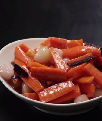 Faire confire 20 minutes à très petits bouillons dans un sirop préparé avec le sucre, le vinaigre de cidre, l'anis et 20cl d'eau. Égoutter et réserver.