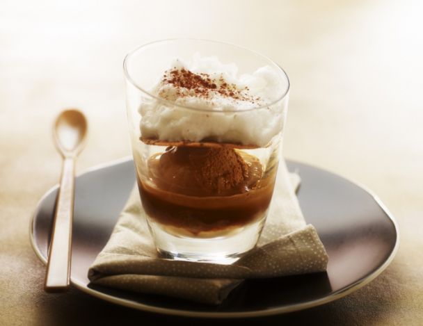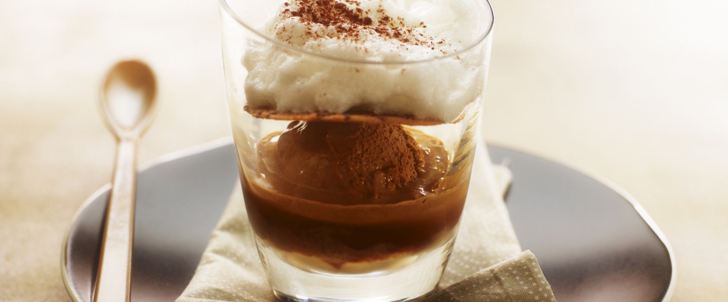 Saupoudrer légèrement de chocolat en poudre comme un Cappuccino.