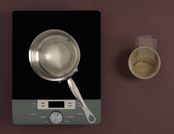 Pour obtenir le sirop à 30°C faire chauffer jusqu’à ébullition 25 g de sucre et 25 g d’eau puis retirer du feu.