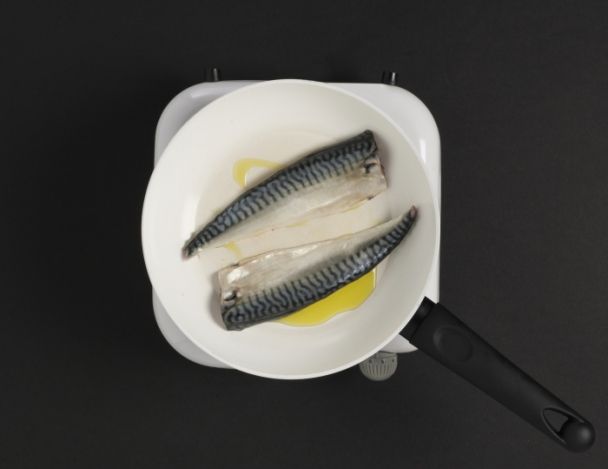 Saler les filets de maquereaux et les faire cuire dans une poêle très chaude avec de l'huile d'olive. Le poisson doit être peu cuit à la fin de la cuisson.