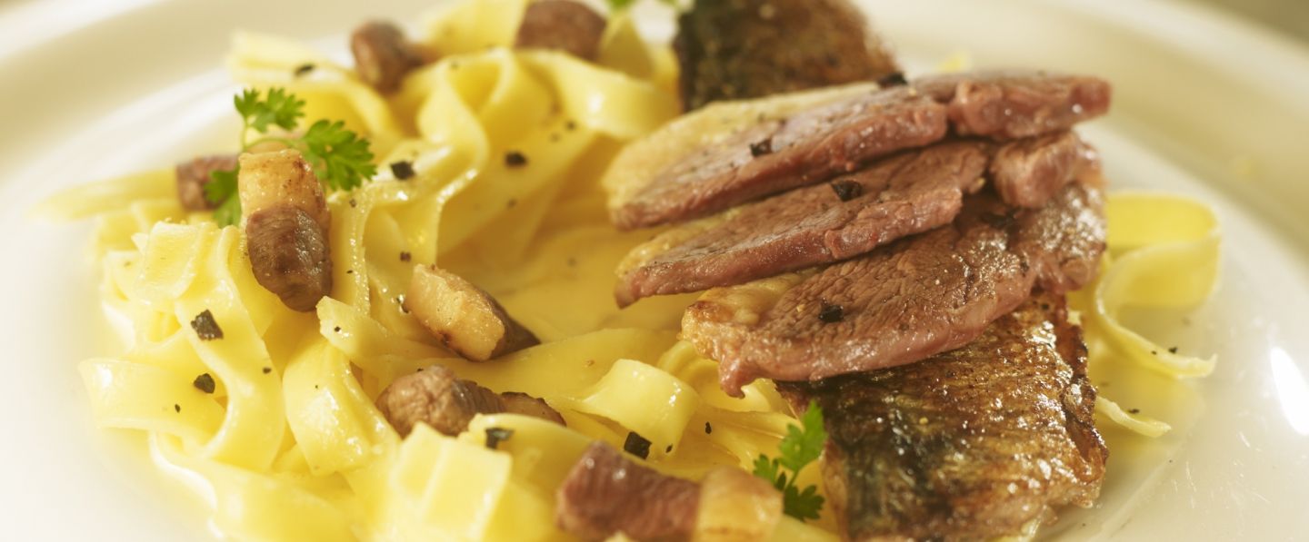 Dans des assiettes creuses, dresser les pâtes en nid et parsemer de truffes noires éminicées (facultatif). Ajouter les filets de maquereaux en long sur le dessus. Servir chaud.