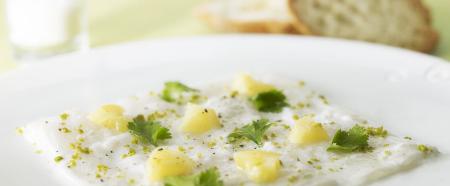 Dans un récipient, verser le lait de coco non sucré. Ajouter le jus de citron vert et de la fleur de sel. Puis ajouter le St Pierre à la marinade.