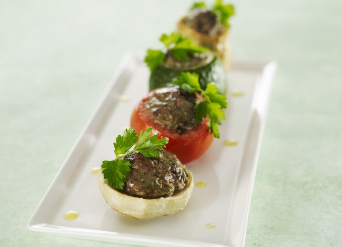 Cuire au four thermostat 6, sur la peau dans un peu d'huile d'olive, pendant 10 à 15 minutes puis laisser reposer sur une grille. Repasser les carrés sur la peau pendant 3 à 4 minutes puis les tourner pendant 2 minutes pour terminer la cuisson.