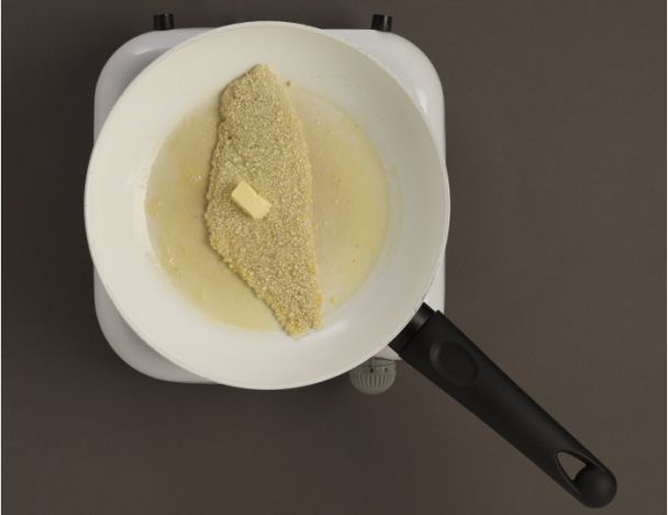 Dans une poêle, faire dorer les filets de carrelet des deux côtés au beurre.