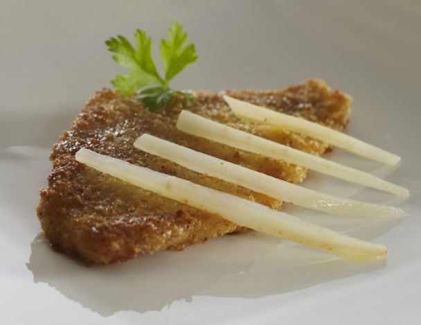 Découvrez la recette de carrelet pané, spaghettis de salsifis du chef Jean-Marie Baudic ! Poisson plat à chair fine, le carrelet est ici proposé pané, pour plus de croustillant !