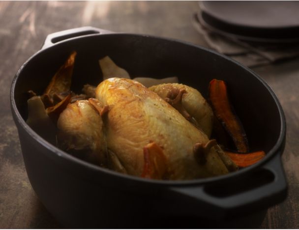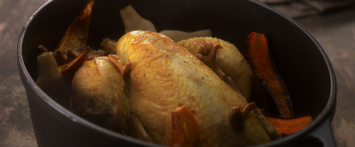 La recette du chapon de Bresse aux marrons et girolles est un plat convivial et gourmand à partager en famille et entre amis lorsque l'automne s'installe et décuple notre appétit. Pour les plus courageux d'entre vous, la cueillette des girolles est envisageable à partir du mois de mai, jusqu'au mois de novembre.