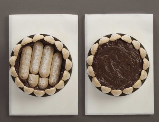 Ajouter la moitié de la mousse, recouvrir d'une couche de biscuits imbibés et ajouter le restant de mousse. Lisser le dessus à la spatule,
