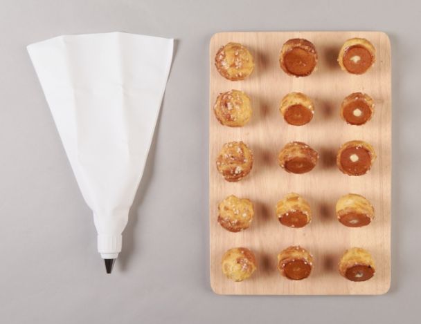 A la fin de la cuisson, laisser refroidir les choux à température ambiante. Au moment de garnir les chouquettes, fouetter vivement la crème pâtissière pendant 50 secondes afin d’y incorporer beaucoup d’air et donc de l’alléger. A l'aide d'une poche à douille, garnir les choux avec de la crème à la vanille jusqu’à les faire « exploser », en faisant un trou par le dessous.