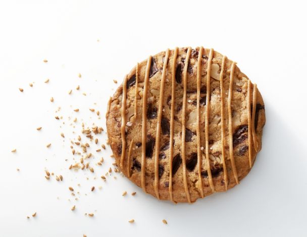 A l'aide d'une poche à douille, appliquer le praliné sur le cookie dès la sortie du four.