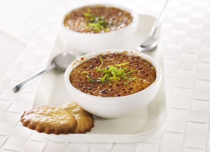 Remplissez la plaque du four d'eau bouillante pour constituer le bain-marie. Enfournez pendant 30 minutes environ. Pour vérifier la cuisson, plantez la pointe d'un couteau, elle doit ressortir sans adhérence.