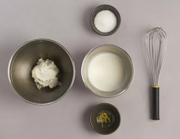 FacileMélanger crème, mascarpone, sucre. Mélanger la crème avec le zeste de citron.