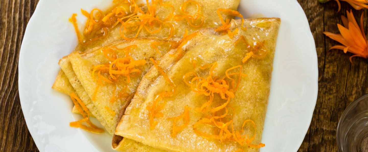 Prélever une noix de beurre d'orange et étaler finement sur la surface de chaque crêpe. Plier chaque crêpe en 4.